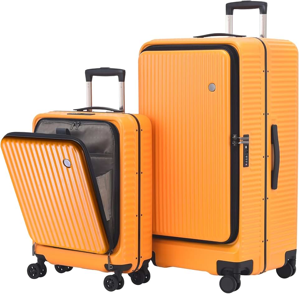 2 pieces 20/29 Aluminum Luggage Set, 39 * 20 * 55cm 43L & 40 * 37 * 77cm 113L, Lightweight Hardshell ABS+PC Suitcase with TSA Lock, 360° Universal Wheels & Adjustable Handle, Orange
