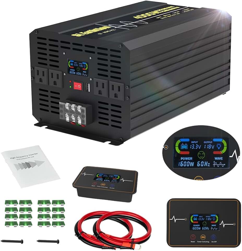 4000W Pure Sine Wave Power Inverter 12V DC to 120V AC 60HZ with LCD Display, USB Port, Wireless Remote Control(10M), Solar, Outdoor