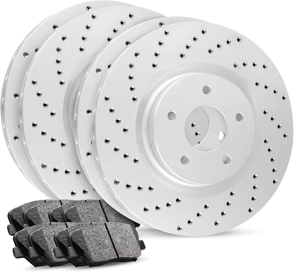 R1 Concepts Front Rear Brakes and Rotors Kit |Front Rear Brake Pads| Brake Rotors and Pads| Ceramic Brake Pads and Rotors |Hardware Kit|fits 2007-2012 Nissan Sentra