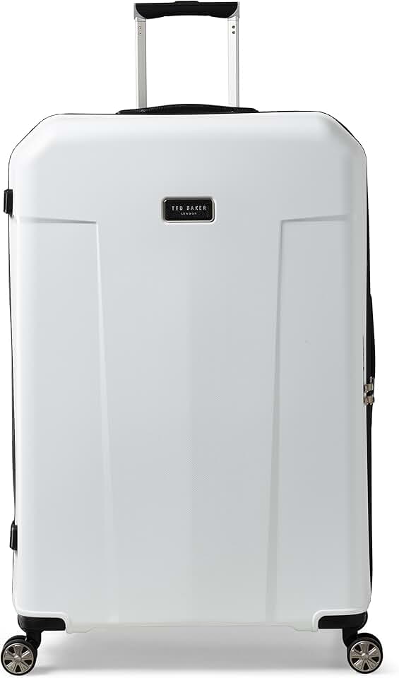Ted Baker Flying Colours Hardside Trolley 4 Wheel Spinner, TSA Lock, Lightweight Suitcase, Men and Women (White, 28-Inch Checked-Large)