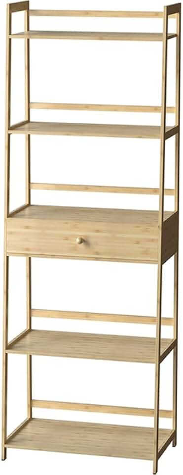 Bookshelf Ladder Shelf with Drawers 5 Tier Tall Bookcase Book Case for Bedroom Living Room Office(D)