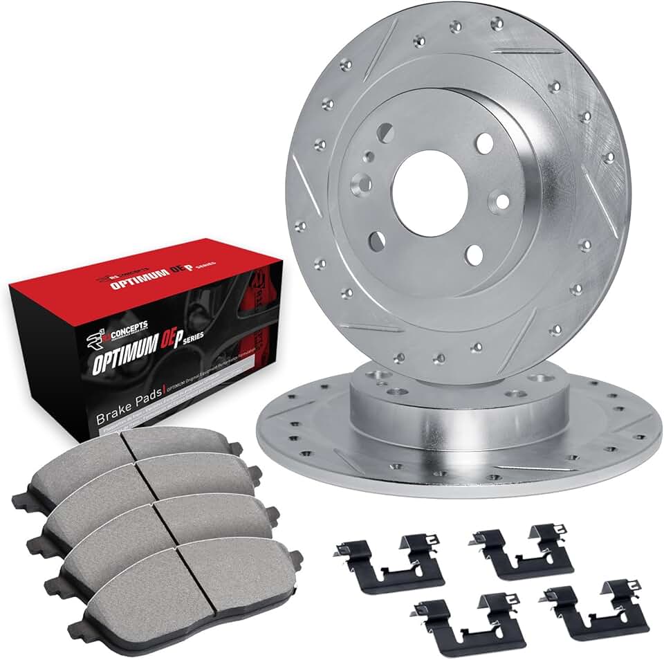 R1 Concepts Front Brakes and Rotors Kit |Front Brake Pads| Brake Rotors and Pads| Optimum OEp Brake Pads and Rotors |Hardware Kit|fits 1983-1983 Mazda 626