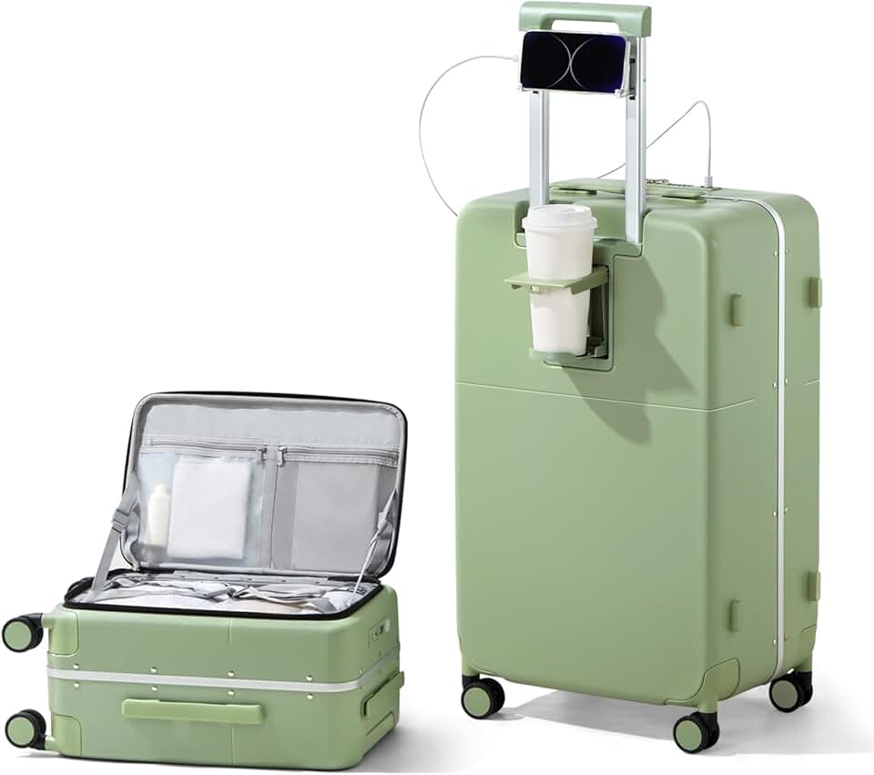 Hanke Luggage 28 Inch Large Suitcases with Wheels,Top Opening Checked Luggage Hard Case Travel Luggage with TSA Lock and Cup Holder,Bamboo Green