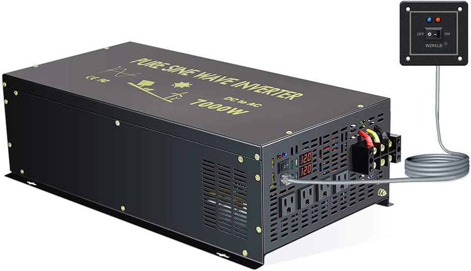 7000W 12V 120V Pure Sine Wave Power Inverter 4 AC Outlets Wired Remote Control,RV, Camping (RBH-700012WR)