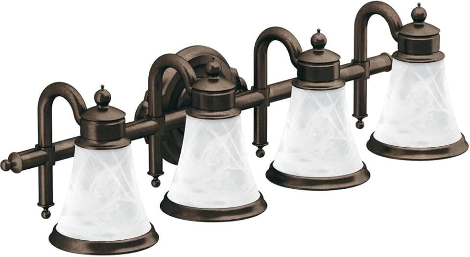 Moen YB9864ORB Waterhill 4-Light Dual-Mount Bath Bathroom Vanity Fixture with Frosted Glass, Oil Rubbed Bronze
