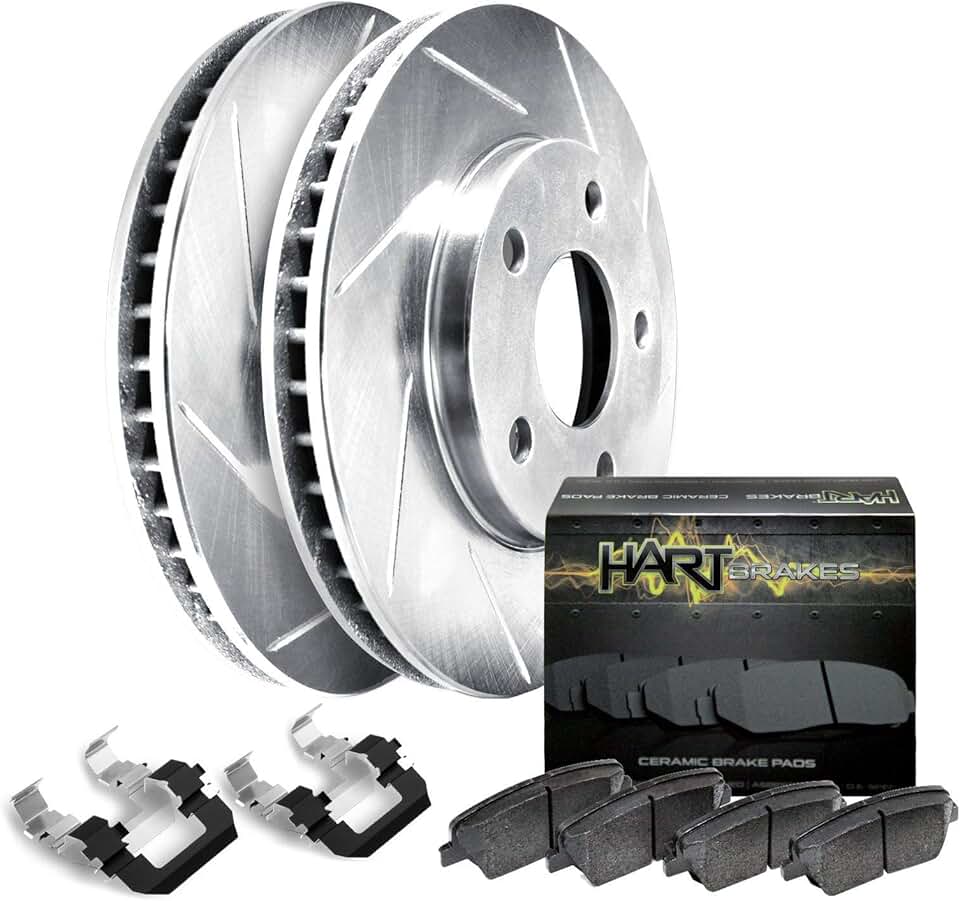 Hart Brakes Fit 2010-2013 Suzuki Kizashi Front Sport Slotted Brake Rotors+Ceramic Brake Pads