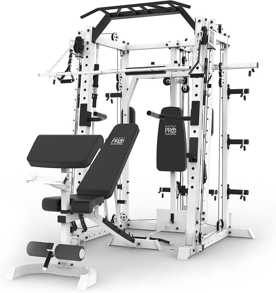 MARCY Smith Machine Multipurpose Power Cage Squat Rack for Home Gym Training System with Pull Up Bar Free Standing and Landmine Station