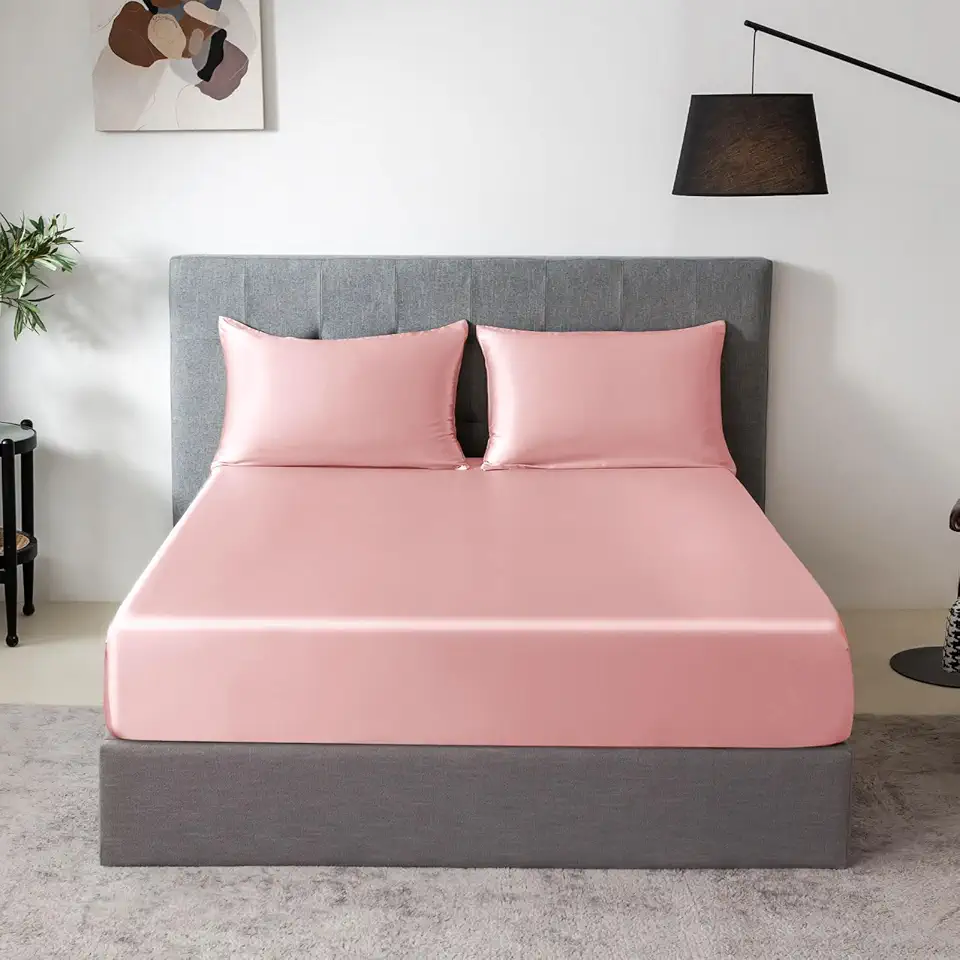 TXHSILK 100% Silk Sheets, 7A+ Silk 3 Pieces Bed Sheets, Breathable, Smooth, 1 16 Inch Deep Pocket Fitted Sheet, 2 Pillowcases - Charming Pink, Full