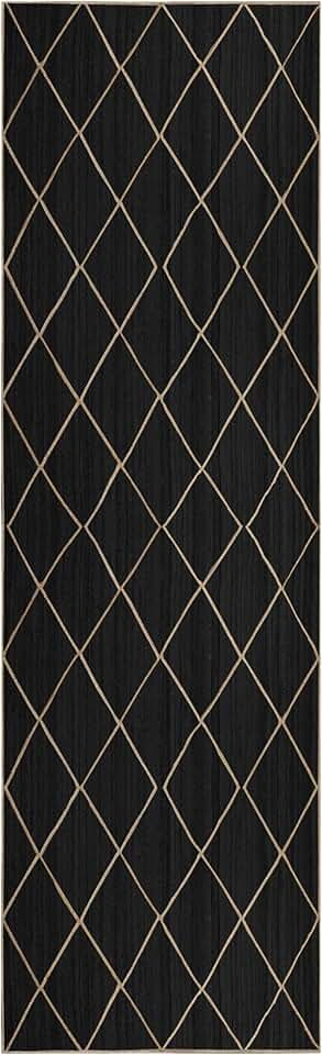 Runner - 2.6x22 Area Rug Kilim Rug Black & Beige Braided Jute Rug Indoor Outdoor Rug Flatweave Rug High Traffic Area Home & Foyer Corridor Hallway & Stair Runner