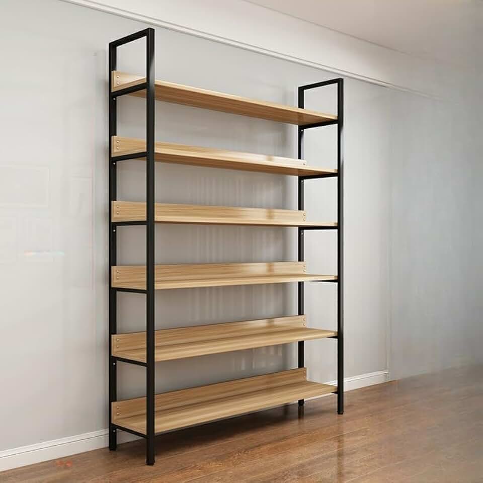 LITFAD Bookshelf Wood Storage Rack with Steel Frame Standard Bookcase for Office Living Room Study Room Bedroom - 55.1" L x 11.8" W x 84.3" H