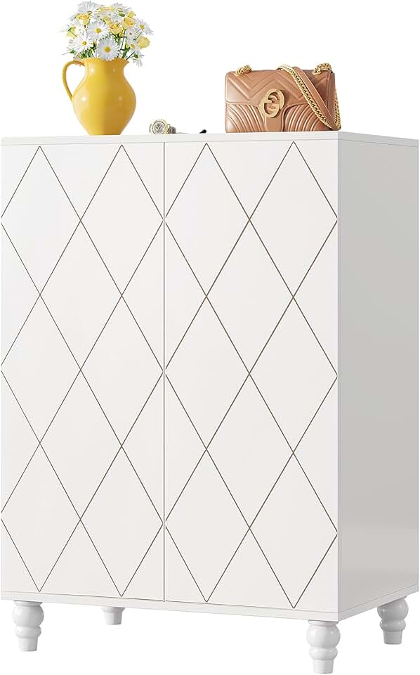 LITTLE TREE 6-Tier 2-Door Shoe Cabinet with Solid Wood Legs, Wooden Shoes Storage Cabinets for Entryway
