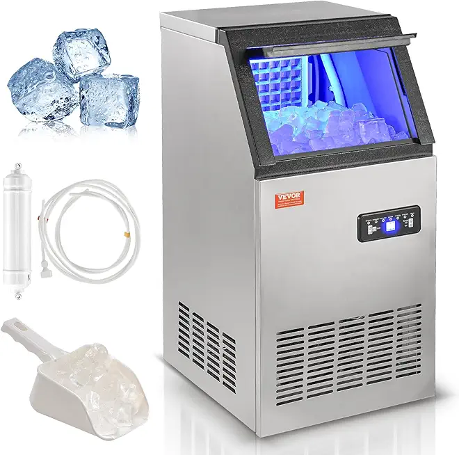 VEVOR Commercial Ice Maker Machine, 80lbs/24H Ice Maker Machine with 27.5lbs Storage Capacity, 40 Ice Cubes in 12-15 Minutes, LED Digital Display Commercial Ice Maker for Bar Home Office Restaurant