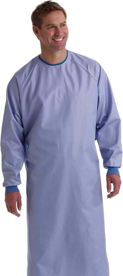 Medline Blockade Fluid and Static Resistant Reusable Cover Gown, 1-Ply, AngelStat Back, Snaps at Neck, Ties at Back, Ceil Blue, 2X-Large - High Quality Medical Protective Wear, Pack of 12