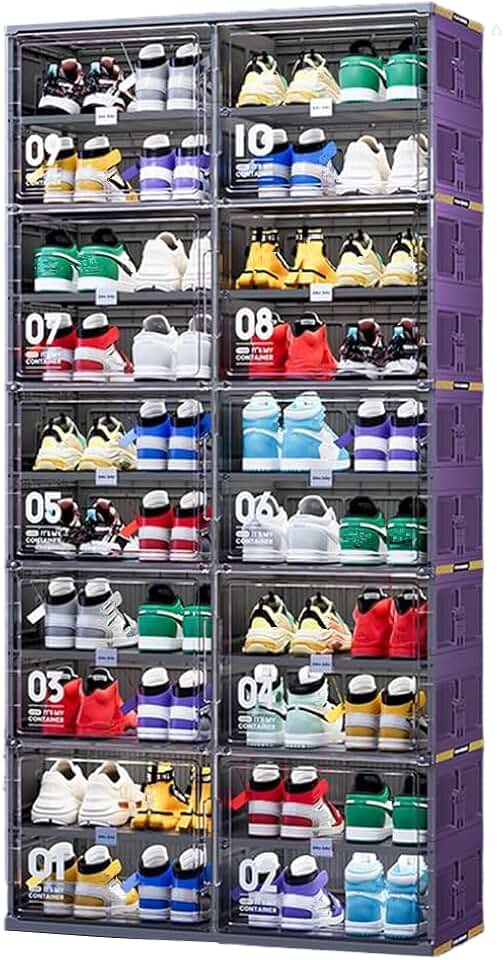 Large 10 Layers 20 Grids Foldable Shoe Rack Organizer for Closet 20-40 Pairs Shoes Collapsible Shoes Storage Box Installation Free Shoe Cabinet
