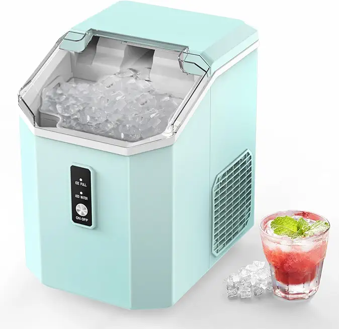 Nugget Ice Maker Countertop, Crushed Chewable Ice Maker, Self Cleaning Ice Makers with One-Click Operation, 34Lbs/24H, Pebble Portable Ice Machine with Ice Scoop for Home Bar Camping RV (Mint Green)