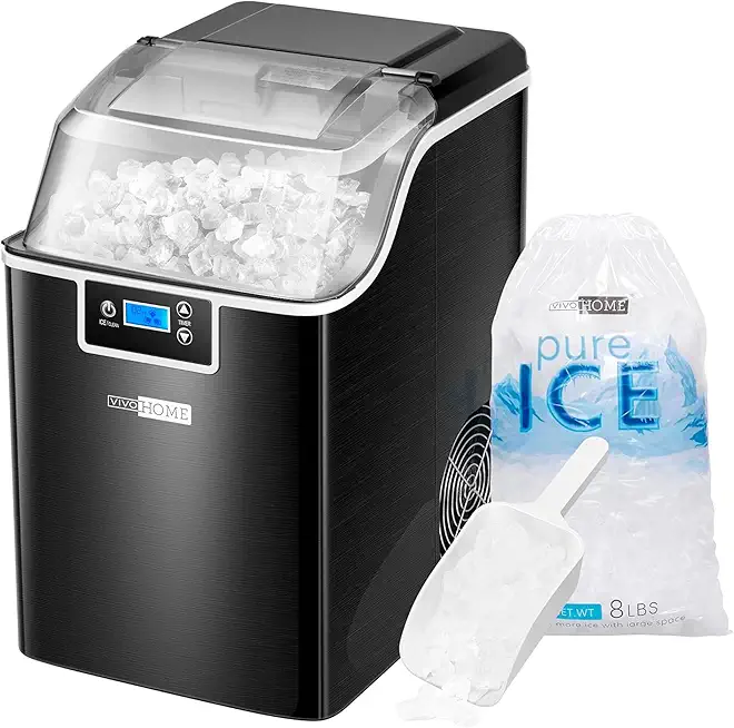 VIVOHOME Nugget Ice Maker Countertop, Portable Pebble Ice Maker Machine with 44lbs/Day, Soft Chewable Pellet Ice Machine with Self-Cleaning, Scoop, 10 Ice Bags, for Home Kitchen, Party, RV, Camping