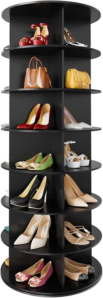 SpaceAid 7 Tier Rotating Shoe Rack Tower, Spinning Shoe Display Lazy Susan, Revolving 360 Shoe Rack Storage Round Carousel, Vertical Handbag Rotate Shoes Closet Organization (7-Tier Black)