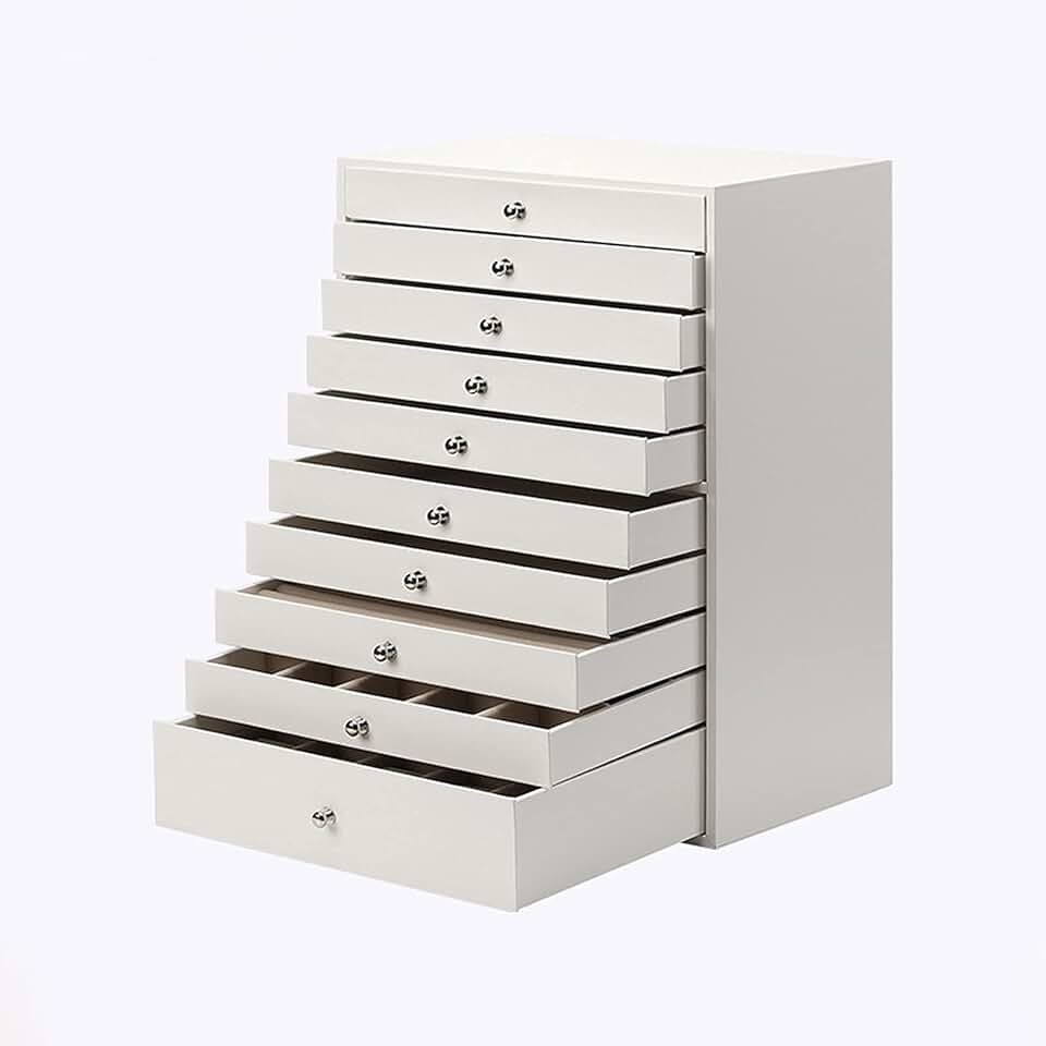 Display Jewelry Box Jewelry Box,10 Large Jewelry Box Organizer Case Faux Leather Handle Storage Box Drawer Type Jewelry Storage BoxGift For Girls Or Women Pink White Jewe