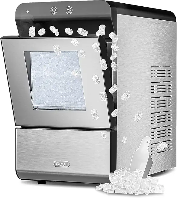 Gevi Household V2.0 Countertop Gemi Nugget Ice Maker with Viewing Window | Self-Cleaning Pebble Ice Machine | Open and Pour Water Refill | Stainless Steel Housing | 16.7''H Fits Under Wall