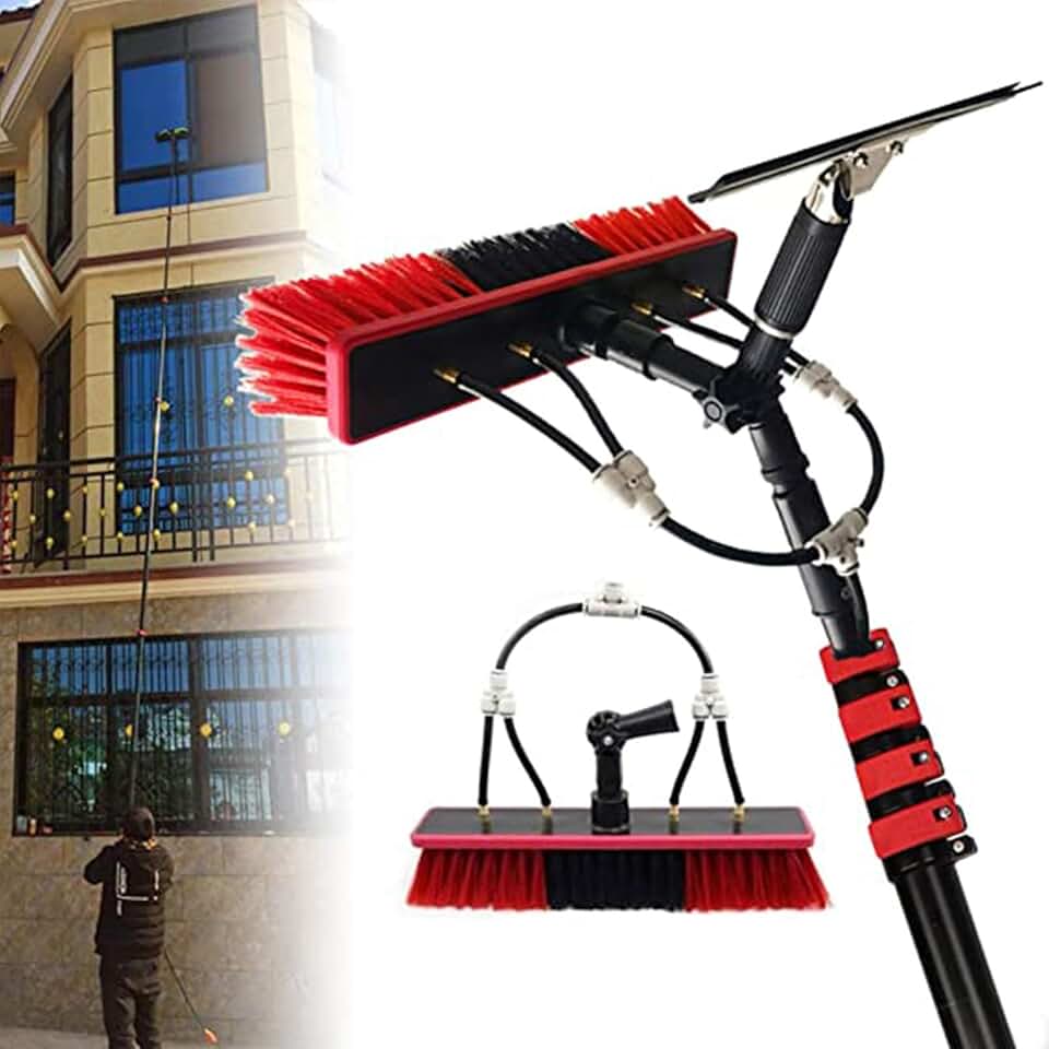 Telescopic Brush Window Cleaner Kit, Water-Bearing Telescopic Rod, Window Cleaning Rod, Suitable for Photovoltaic Panel Cleaning(with Scraper),10.8M/36FT