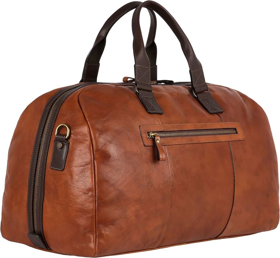Time Resistance Leather Duffel Bag - Full Grain Leather Travel Bag - Gym Bag for Men and Women - Overnight or Weekender Bag - Leather Luggage Bag - Shoulder Bag