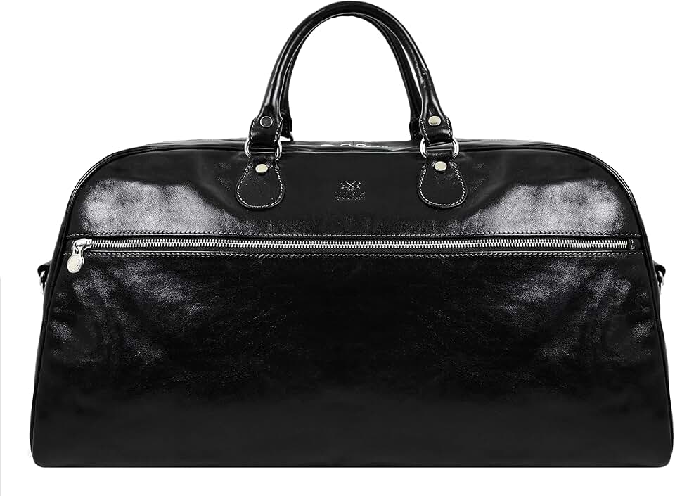 Leather Duffel Bag Full Grain Leather Travel Bag Weekend Bag Gym - Time Resistance (Black)