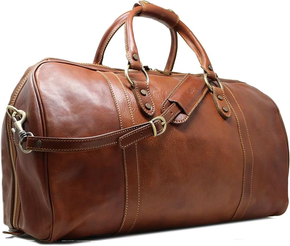 Floto Roma Cabin Bag Saddle Brown Italian Leather Weekender Duffle