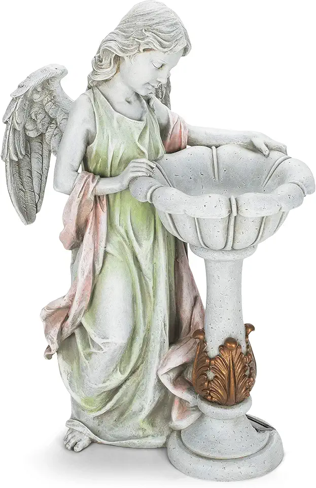 Joseph's Studio by Roman Inc., Solar Angel BIRDBATH, Garden Collection, Religious Statue, Holy Family, Memorial, Angel, Patron Saint, Garden Décor (23x24x12)