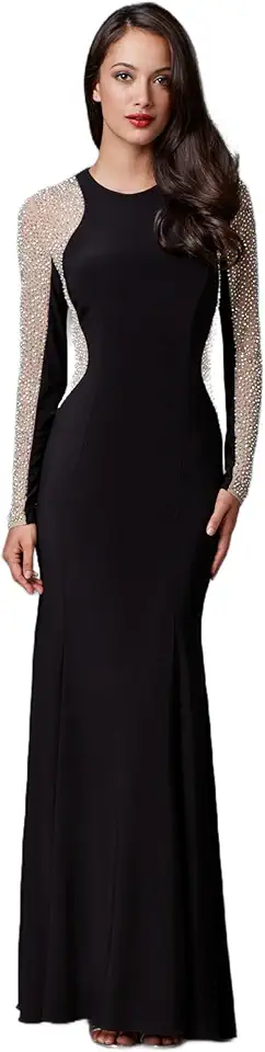 Xscape Women's Long Sleeve Beaded Contour Gown