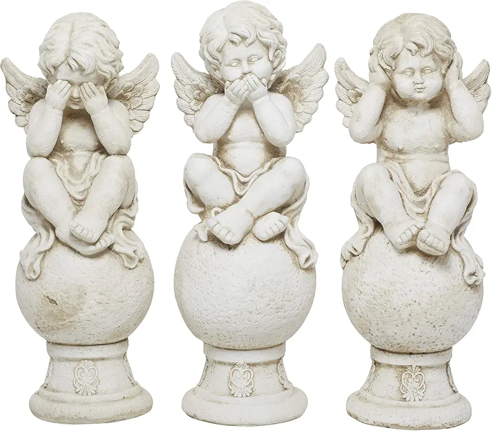 Deco 79 Magnesium Oxide Biblical Indoor Outdoor Angel Garden Sculpture, Set of 3 11"W, 29"H, White