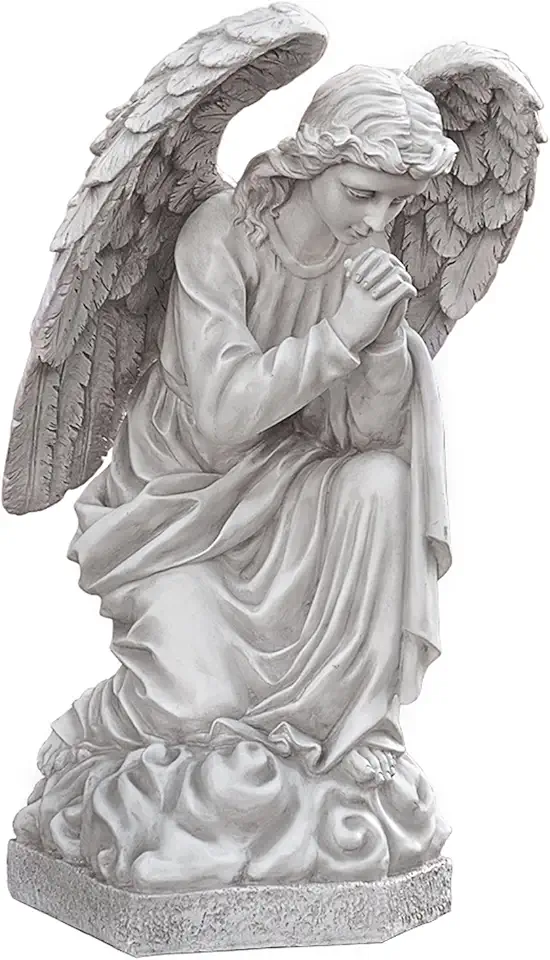 Design Toscano DB24728 Praying Basilica Angel Kneeling Outdoor Garden Statue, 26 Inch, Antique Stone