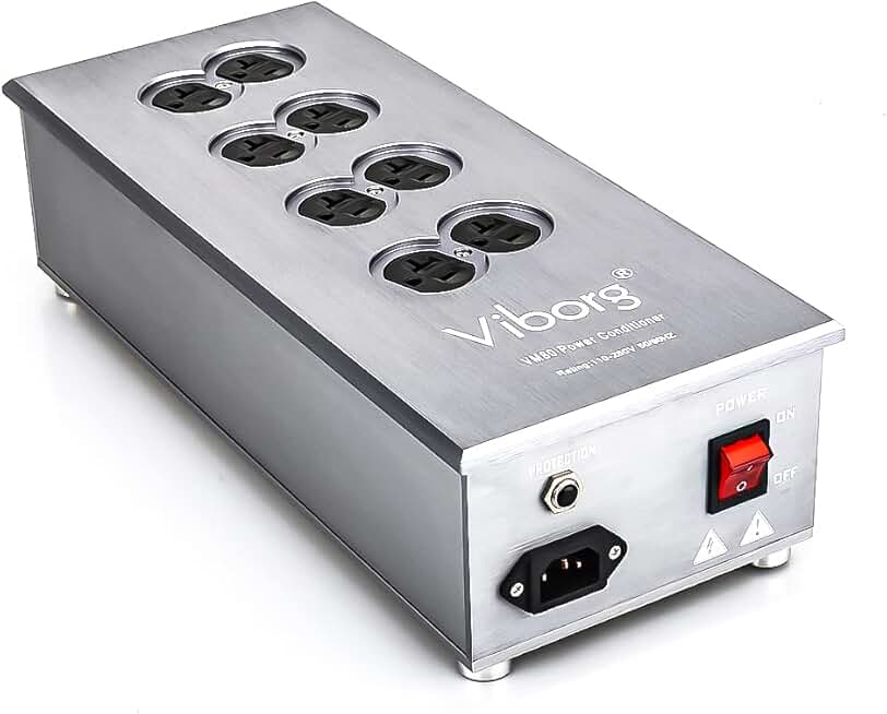 Viborg VM80 AC Power Filter - Amp HiFi Power Surge Protector - US Power Conditioner - 8 Ways Power Socket - Audiophile 8 Outlet Power Strip with Flat Plug - 3 Prongs - Grounded - 5FT Power Cord