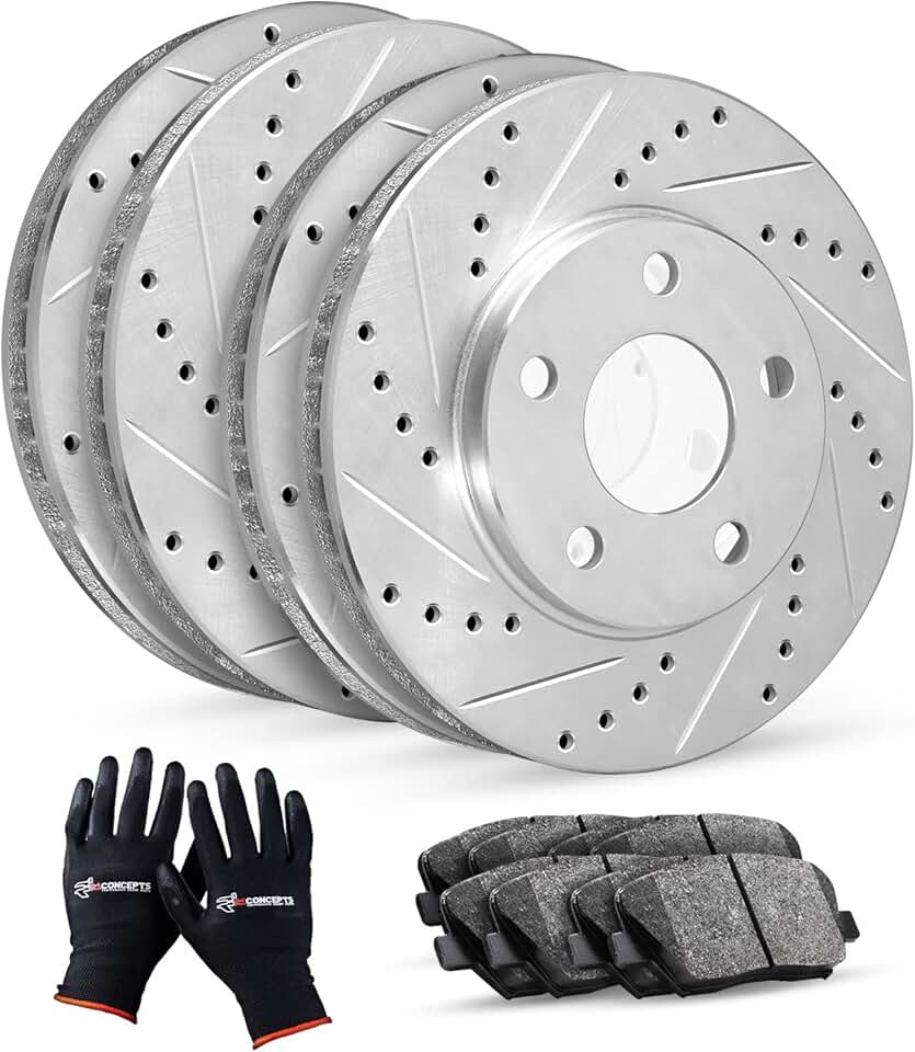 R1 Concepts Front Rear Brakes and Rotors Kit |Front Rear Brake Pads| Brake Rotors and Pads| Ceramic Brake Pads and Rotors |fits 2015-2018 Volkswagen GTI, 2017-2019 Volkswagen Golf Alltrack
