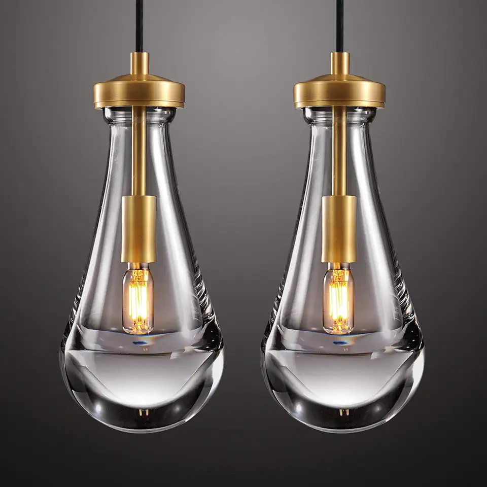 Raindrop Pendant Light Fixtures Set of Two, Brass Glass Pendant Lighting, Teardrops Pendant Lights Kitchen Island, Indoor Pendant Light for Kitchen Island Bedroom Bathroom, Included Bulb