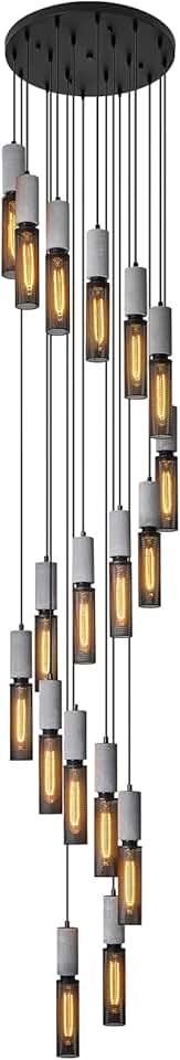 18-Light Concrete Linear Black Pendant Light with a Metal Mesh Shade,Staircase Large Chandelier Lobby Living Room Bedroom Foyer High Ceiling Chandelier