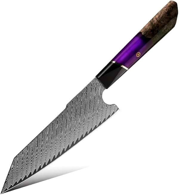 7" - Kotetsu - Super Sharp Professional Chef's Knife with Finger Rest - 7 Inch Chef's Knives - Japanese High Carbon Stainless Steel Damascus - VG 10 - Best Kitchen Knives 2023