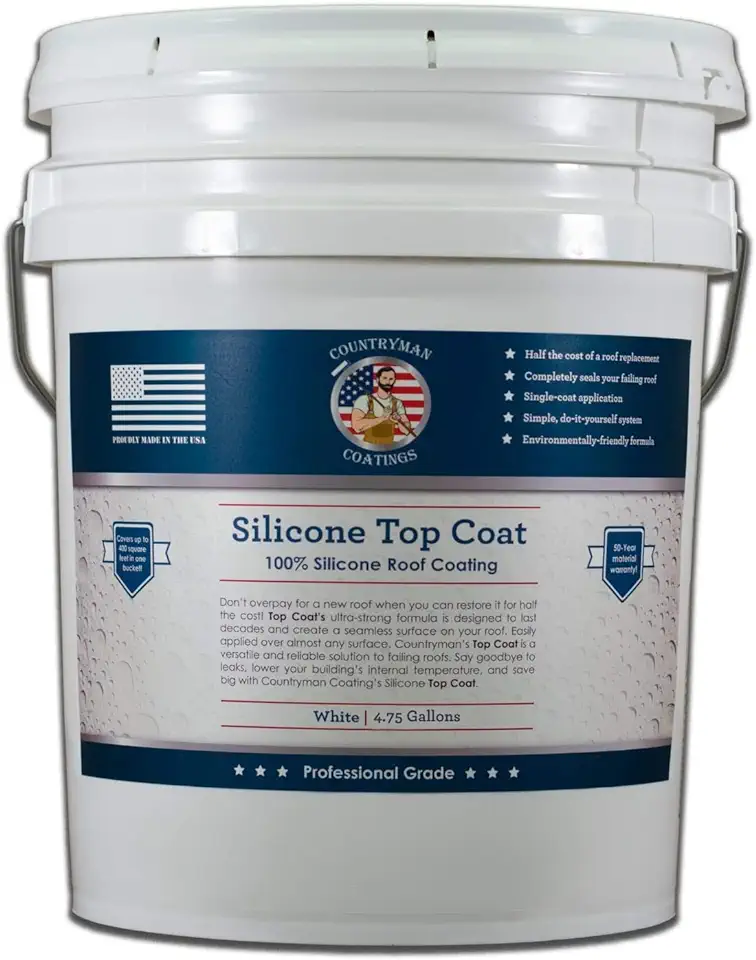 Countryman Coatings 100% Silicone Roof Coating - Restore Your Roof in a Day - Seal Leaks, Cracks, Seams, Penetrations - Adheres to All Surfaces (4.75 Gallon, White)