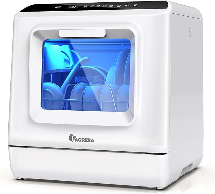 IAGREEA Portable Countertop Dishwasher, No Hookup Needed, Compact Dishwasher With 5-Liter Built-in Water Tank,5 Programs, 360° Dual Spray