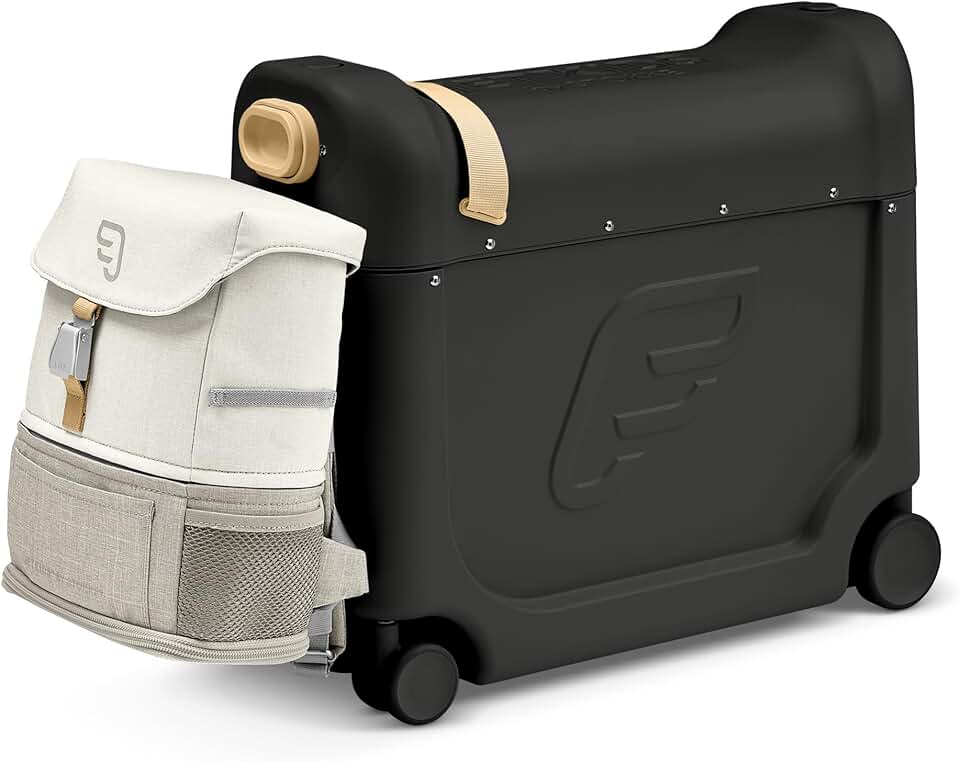 JetKids by Stokke Travel Bundle, Black - Includes Kid’s Ride-On Suitcase & In-Flight Bed + Crew BackPack - Best for Ages 3-7