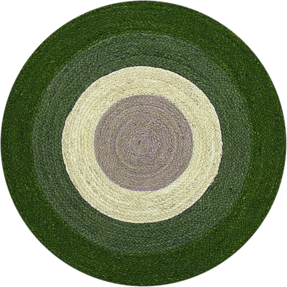 7' Round Rug Kilim Rug Green & Beige Pattern Braided Jute Rug Indoor Outdoor Rug Flatweave Rug High Traffic Area Dining Table Round Hall Room Round Patio Rug