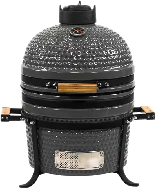 VESSILS Ceramic Charcoal Kamado Grill - Tabletop 5-in-1 Charcoal BBQ Smoker - 12.6" Stainless Steel Grid - Egg Shaped Ceramic Outdoor Heavy Duty Char Broil Barbecue Grill for Smoking, Grilling, Baking