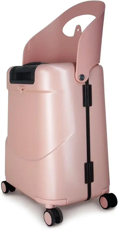MiaMily 4-Wheel Carry On Luggage with Seat for Kids with Seat Belt, Waterproof Pocket, Adjustable Handle, and Hard Body with 43 Liter Capacity, Dusty Pink