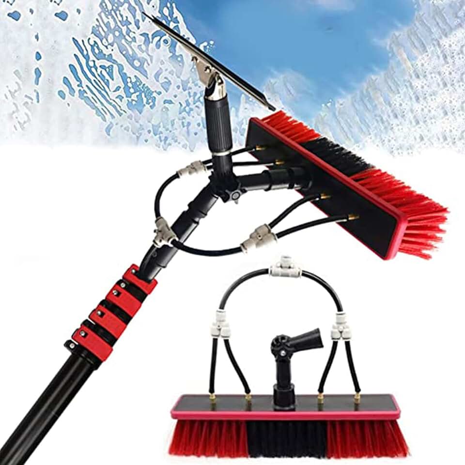 12-36 Foot (Long Reach) Photovoltaic Panels Cleaning Brush & Pole with 20m Hose, Water Fed Pole Kit Outdoor Window Glass Cleaning Tool,6m/20ft