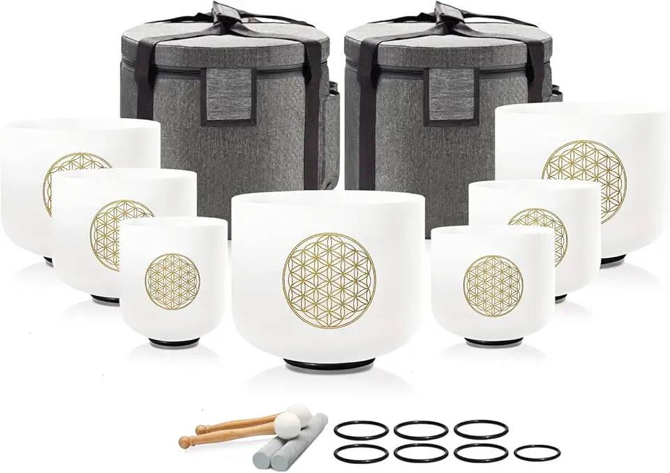 Singing Bowl 432 Hz Chakra 7PCS of 6-12 Inch Flower of Life Sound Bowl Meditation Set for Healing,Free 2 PCS Travel Carry Case Bag.