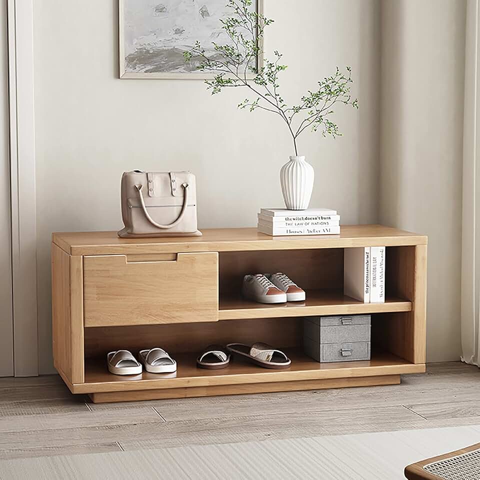 Solid Wood Entryway Bench with Drawer,Premium Shoe e Bench Shoe Cabinet,Modern Wooden Shoe Bench Shoe Organizer Furniture-Yellow 80x35x44cm(31x14x17inch)