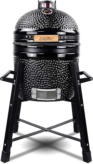 Ceramic Kamado Charcoal BBQ Grill -The Junior Series with Tall Stand (BLACK)
