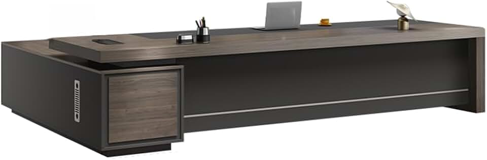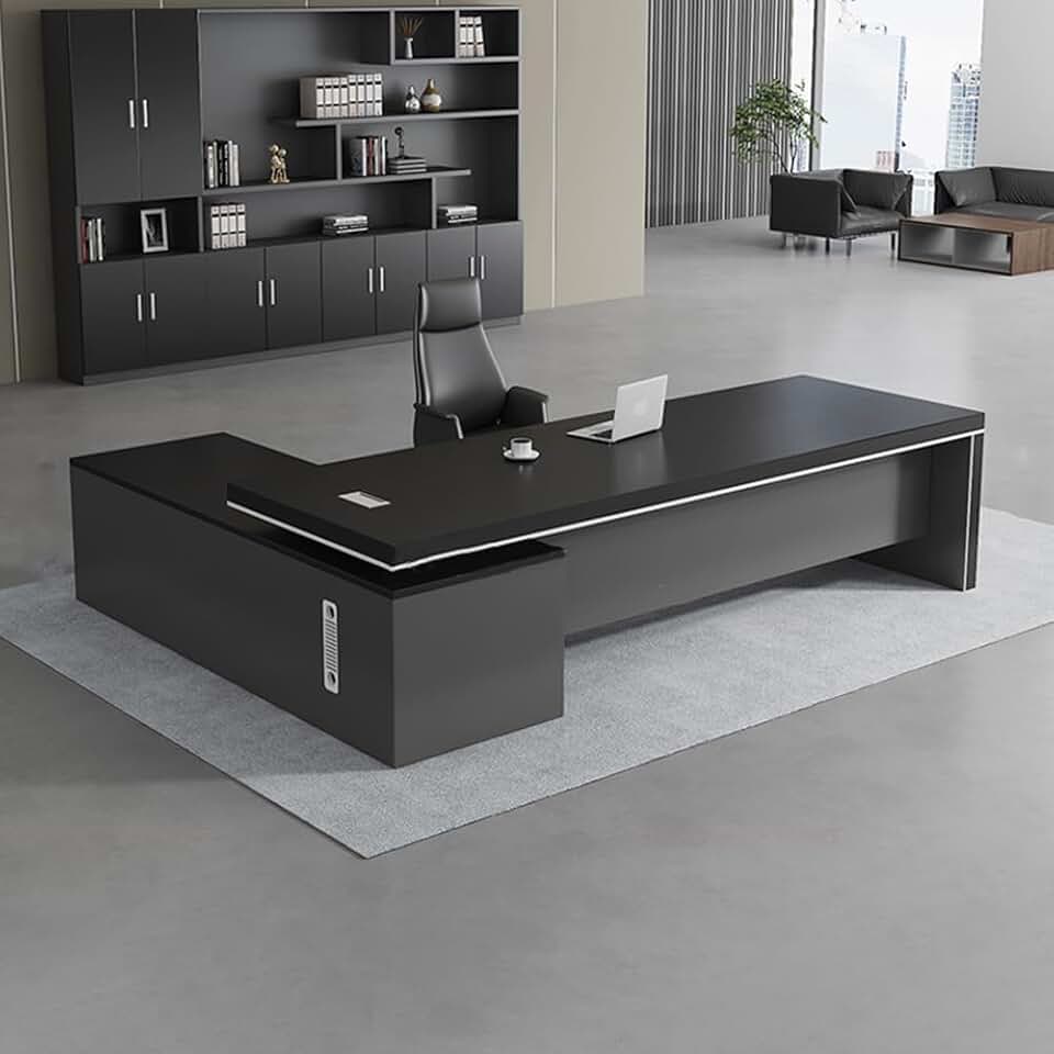 LITFAD Wood Executive Desk Modern Office Computer Desk with Side Storage, CPU Stand, Cord Management, L-Shape Writing Desk Boss Table Home Office Furniture Without Chairs, Black 79" L x 47" W x 30" H