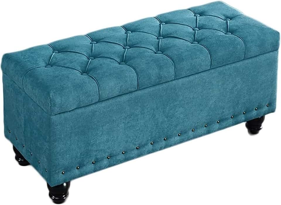 Folding Rectangular Fabric Storage Footstool with Cover,Bedroom Bed End Stool Sofa Stool Hallway Entryway Shoe Changing Stool(100X40X45cm) (Lake Blue 60X40X45cm)