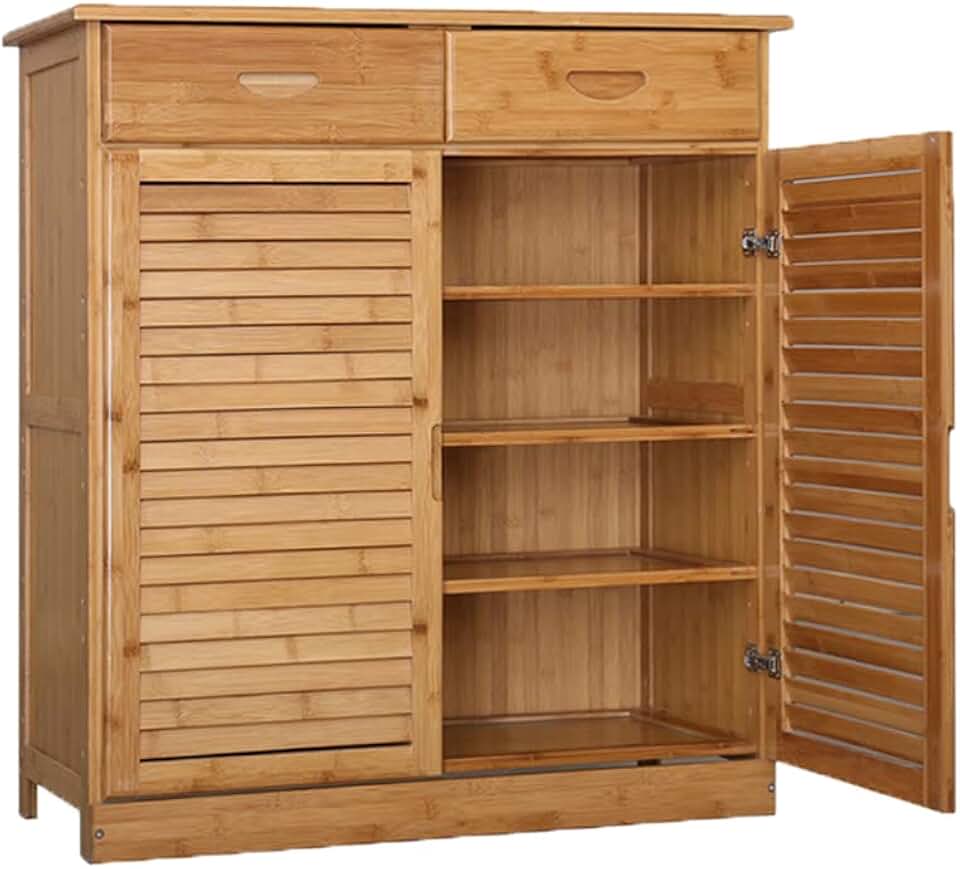 Shoe Racks Bamboo 4 Tier Shoe Storage Cabinet,Shoes Rack with Shutter Doors & Drawer for Entryway Hallway Living Room Closet Storage Organizer