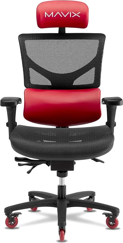 MAVIX M7 Gaming Chair: 21” Wide Seat, DVL, M-Breeze Fabric - Ergonomic Lumbar Support/Optimal Venting/Comfort Design/Ideal for Gamers & Office (Red/Black)